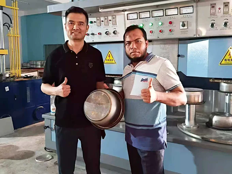 Egyptiske kunder på produksjonsstedet for gryter i rustfritt stål
